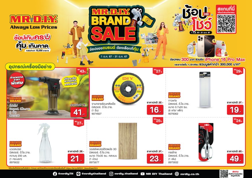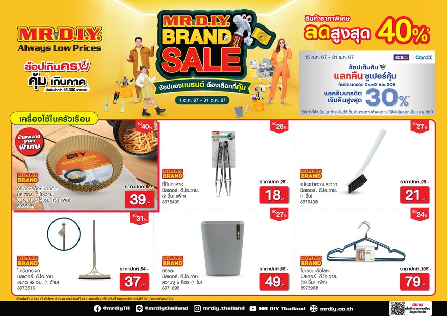 Don’t miss out on these incredible deals! Visit MR. D.I.Y. stores nationwide or shop online 24/7 at www.mrdiy.co.th or through MR. D.I.Y.'s official stores on Shopee Mall at https://bit.ly/3hrVo7F, LazMall at https://bit.ly/3TeJ3DH, and TikTok Shop at https://bit.ly/4cped2q