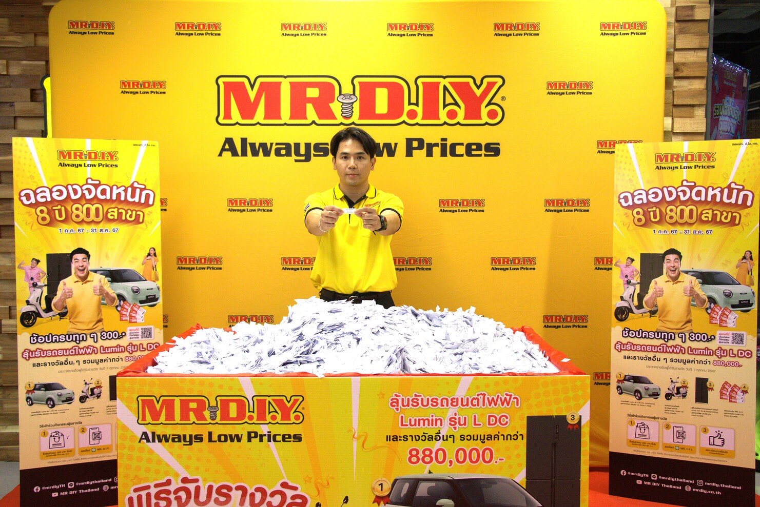 กรุงเทพฯ, 01 ตุลาคม 2567 – มิสเตอร์. ดี.ไอ.วาย. ผู้นำธุรกิจค้าปลีกอุปกรณ์ตกแต่งบ้านและสินค้าไลฟ์สไตล์ นำโดย คุณอานุภาพ คงมาลัย รองประธานบริหารฝ่ายการตลาด และ คุณคทาวุฒิ พุกรอด ผู้จัดการฝ่ายการตลาด จัดพิธีจับรางวัลชิงโชคกลางปีสุดยิ่งใหญ่แก่ผู้โชคดี ในกิจกรรม “ฉลองจัดหนัก 8 ปี 800 สาขา เมื่อวันพฤหัสที่ 26 กันยายน 2567 ณ ร้านมิสเตอร์. ดี.ไอ.วาย. สาขาศูนย์การค้า เดอะสตรีท รัชดา ชั้น 2 โดยแคมเปญดังกล่าวจัดขึ้นในเดือนกรกฎาคม 2567 และเดือนสิงหาคม 2567 ที่ผ่านมา รวมของรางวัลตลอดรายการมากกว่า 50 รางวัล รวมมูลค่ากว่า 880,000 บาท ซึ่งได้รับผลตอบรับเข้าร่วมแคมเปญเป็นอย่างดีจากลูกค้าทั่วประเทศไทยในกว่า 800 สาขาทั่วประเทศ