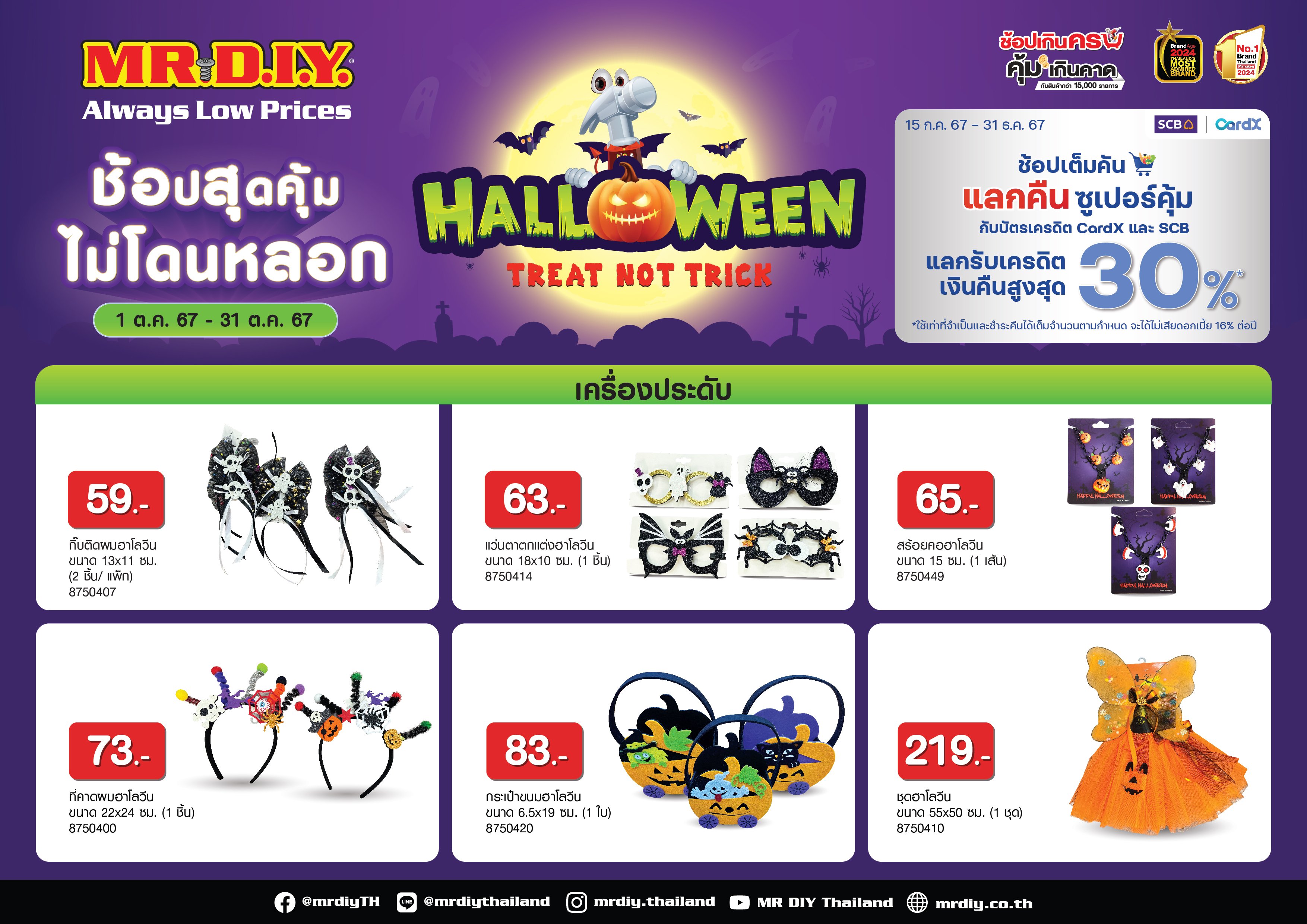 กรุงเทพฯ, 04 ตุลาคม 2567 – ฮาโลวีนปีนี้ มิสเตอร์. ดี.ไอ.วาย. ผู้นำธุรกิจค้าปลีกอุปกรณ์ตกแต่งบ้านและสินค้าไลฟ์สไตล์ จัดเต็มความสนุกกับแคมเปญ “Halloween Treat Not Trick” ช้อปสุดคุ้ม ไม่โดนหลอก ให้คนไทยได้เพลิดเพลินกับการเลือกซื้อสินค้าฮาโลวีนสุดสร้างสรรค์กว่า 150 รายการ ในราคาถูกคุ้มเสมอ (Always Low Prices) ทั้งของตกแต่งบ้าน เสื้อผ้า เครื่องประดับ ที่พร้อมให้ทุกคนเข้าร่วมเทศกาลปล่อยผีแบบเต็มพิกัด ตั้งแต่วันที่ 1 ตุลาคม 2567 – 31 ตุลาคม 2567