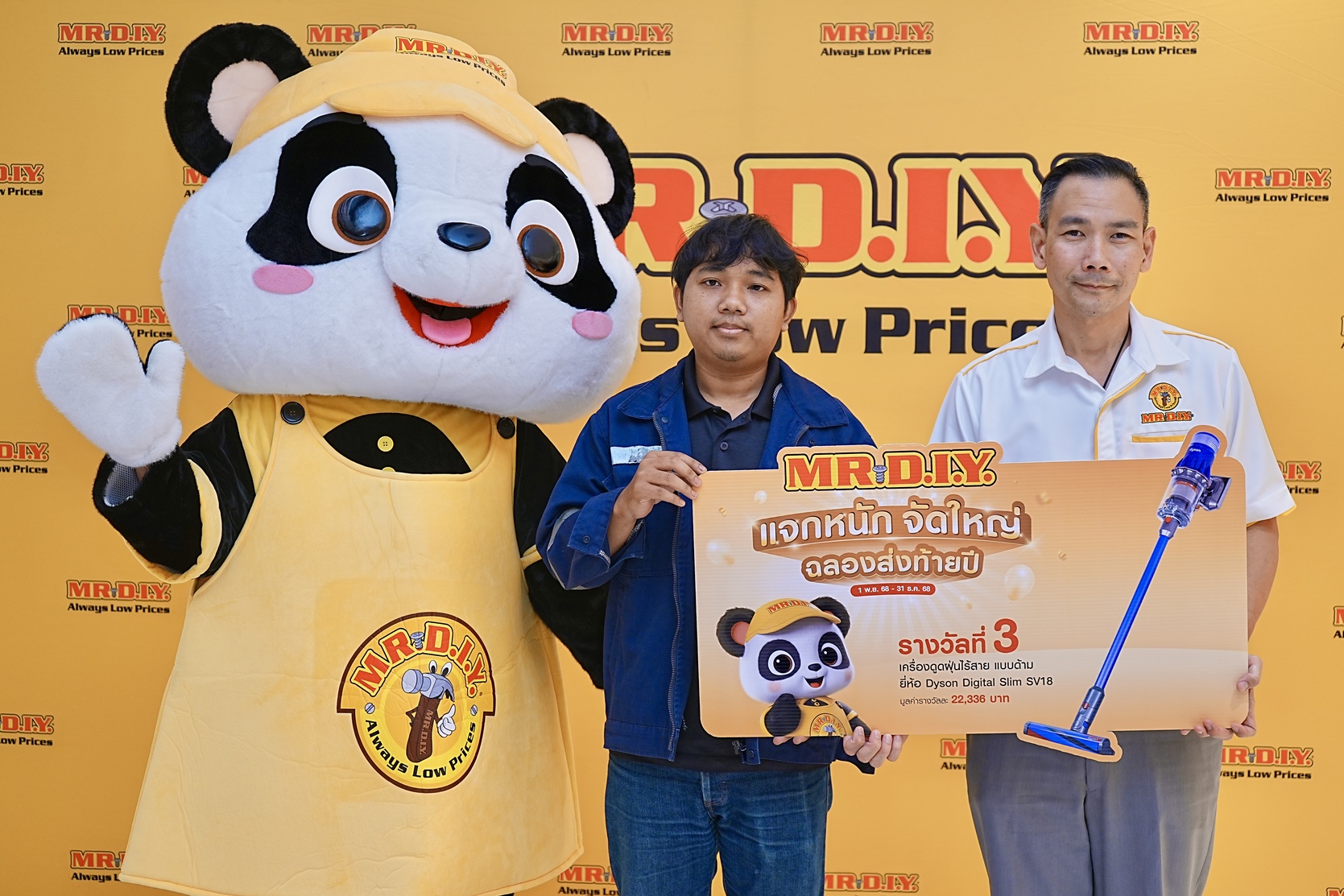มิสเตอร์. ดี.ไอ.วาย. ขอขอบคุณลูกค้าทุกท่านที่ร่วมสนุกในแคมเปญ “แจกหนัก จัดใหญ่ ส่งท้ายปี”(1) และขอแสดงความยินดีกับผู้โชคดีทุกท่านอีกครั้ง โดยสามารถตรวจสอบรายชื่อผู้โชคดีได้ที่ https://bit.ly/winnerluckydrawRound2