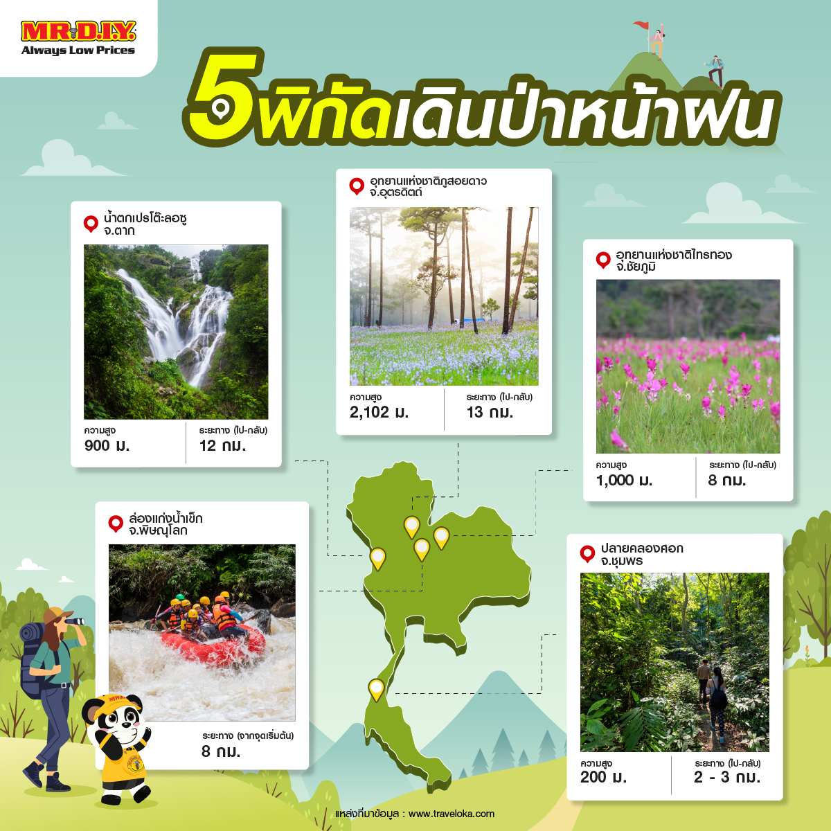 การเดินป่าคือการกลับไปหาธรรมชาติ หาความเรียบง่าย และรู้จักตัวเองให้มากขึ้น หากยังไม่เคยไป ลองเริ่มจากทริปเล็ก ๆ แล้วจะหลงรักเสน่ห์ของผืนป่าภาคเหนืออย่างแน่นอน สำหรับใครที่มีแพลนจะไปเดินป่าก่อนออกเดินทาง อย่าลืมเตรียมไอเทมสำคัญให้ครบทั้ง เสื้อกันฝน, ไฟฉาย, ขวดน้ำพกพา, กล่องกันน้ำ,หมวกปีกกว้าง หรือ เครื่องมือช่างเล็ก ๆ สำหรับฉุกเฉิน โดยหาซื้อได้ง่าย ๆ ที่ MR. D.I.Y. ใกล้บ้าน