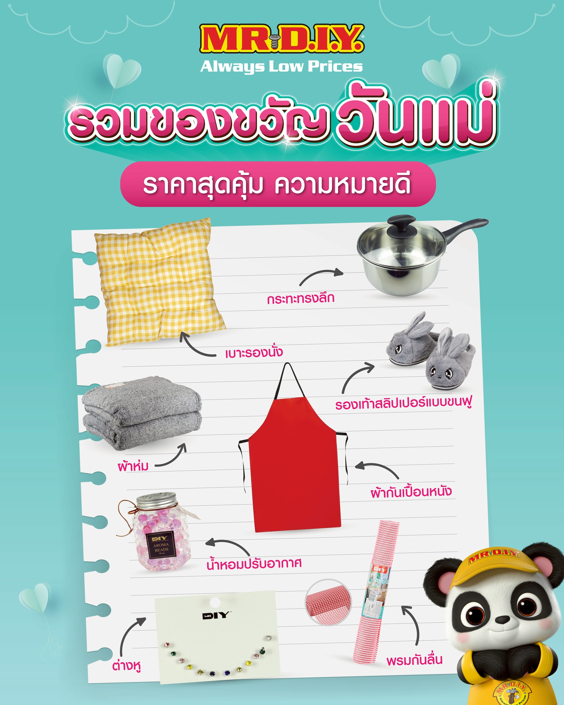 วันแม่ปีนี้ บอกรักแม่ด้วยของขวัญดี ๆ จากใจ พร้อมส่งต่อความห่วงใยผ่านของขวัญสุดพิเศษจาก MR. D.I.Y. หากคุณกำลังมองหา "ของขวัญวันแม่” ที่ทั้งคุ้มค่าและความหมายดี ลองแวะมาที่ MR. D.I.Y. สาขาใกล้บ้านคุณ หรือชปอปออนไลน์ง่าย ๆ พร้อมโปรโมชั่นพิเศษประจำเดือนสิงหาคม