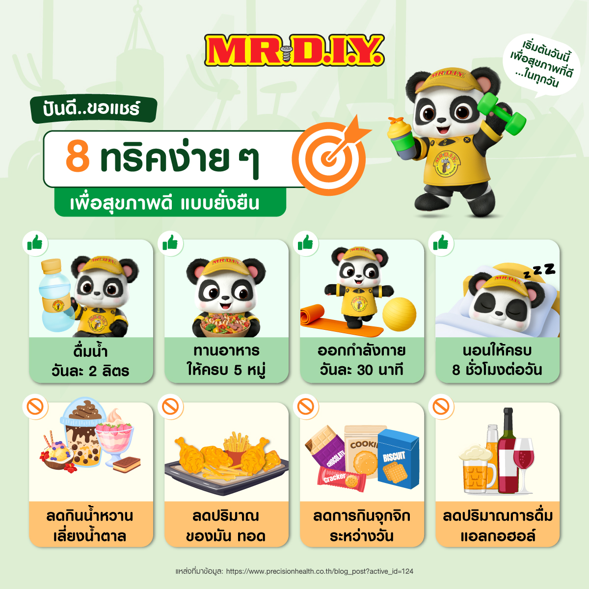 D.I.Y. พร้อมเป็นส่วนหนึ่งของการดูแลสุขภาพในทุกวัน ด้วยของใช้เพื่อสุขภาพและไลฟ์สไตล์ที่เลือกได้ง่าย ในราคาสบายกระเป๋า หาซื้อง่าย ที่ MR. D.I.Y. ทุกสาขาใกล้บ้านคุณ