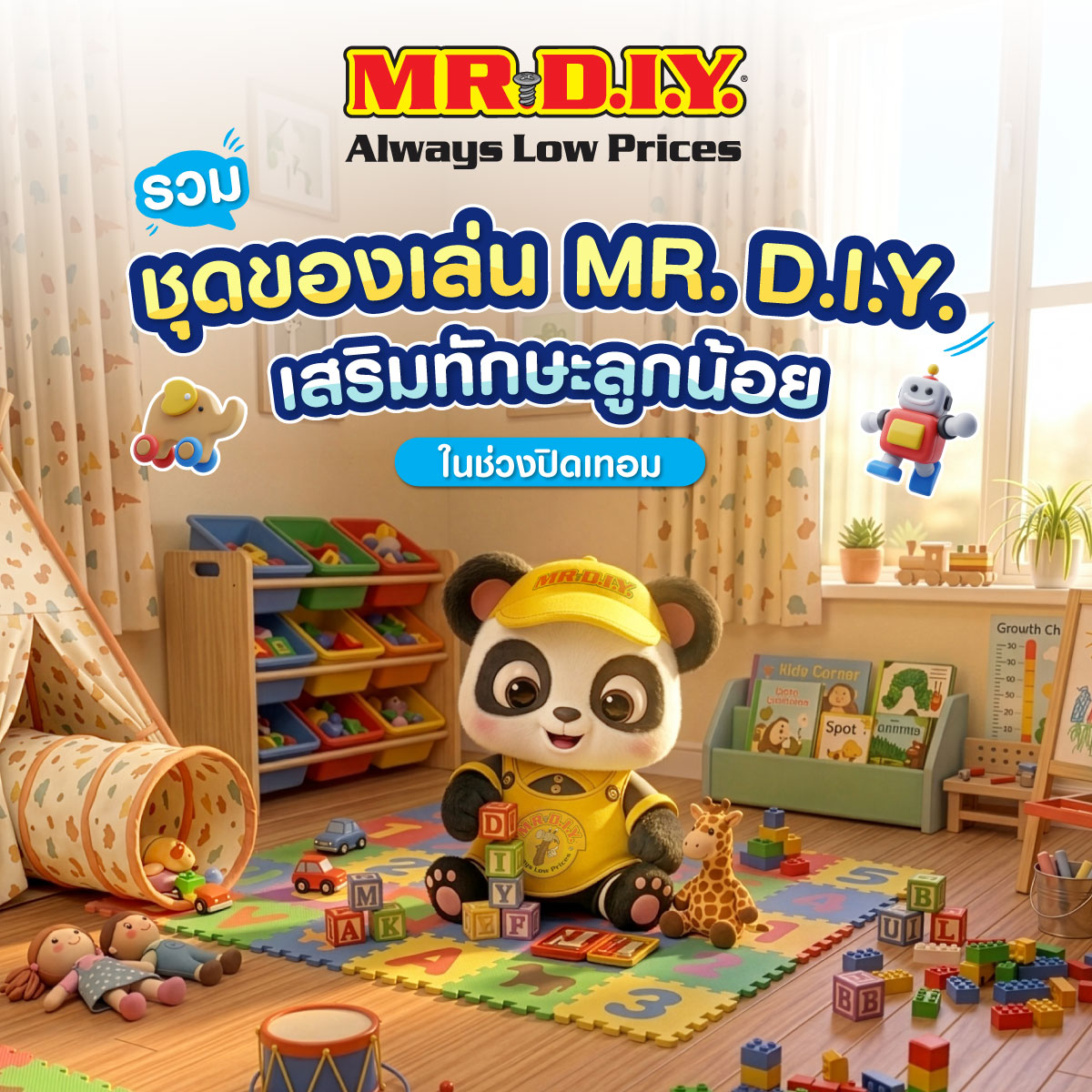 วันนี้ MR. D.I.Y. ขออาสาเป็นตัวช่วยเนรมิตบ้านให้กลายเป็นพื้นที่แห่งการเรียนรู้ ด้วยชุดของเล่น DIY สุดสร้างสรรค์ที่จะช่วยฝึกสมาธิ กล้ามเนื้อมัดเล็ก และจินตนาการให้พุ่งกระฉูด จะมีชิ้นไหนน่าสนใจบ้าง ไปดูกันเลย!