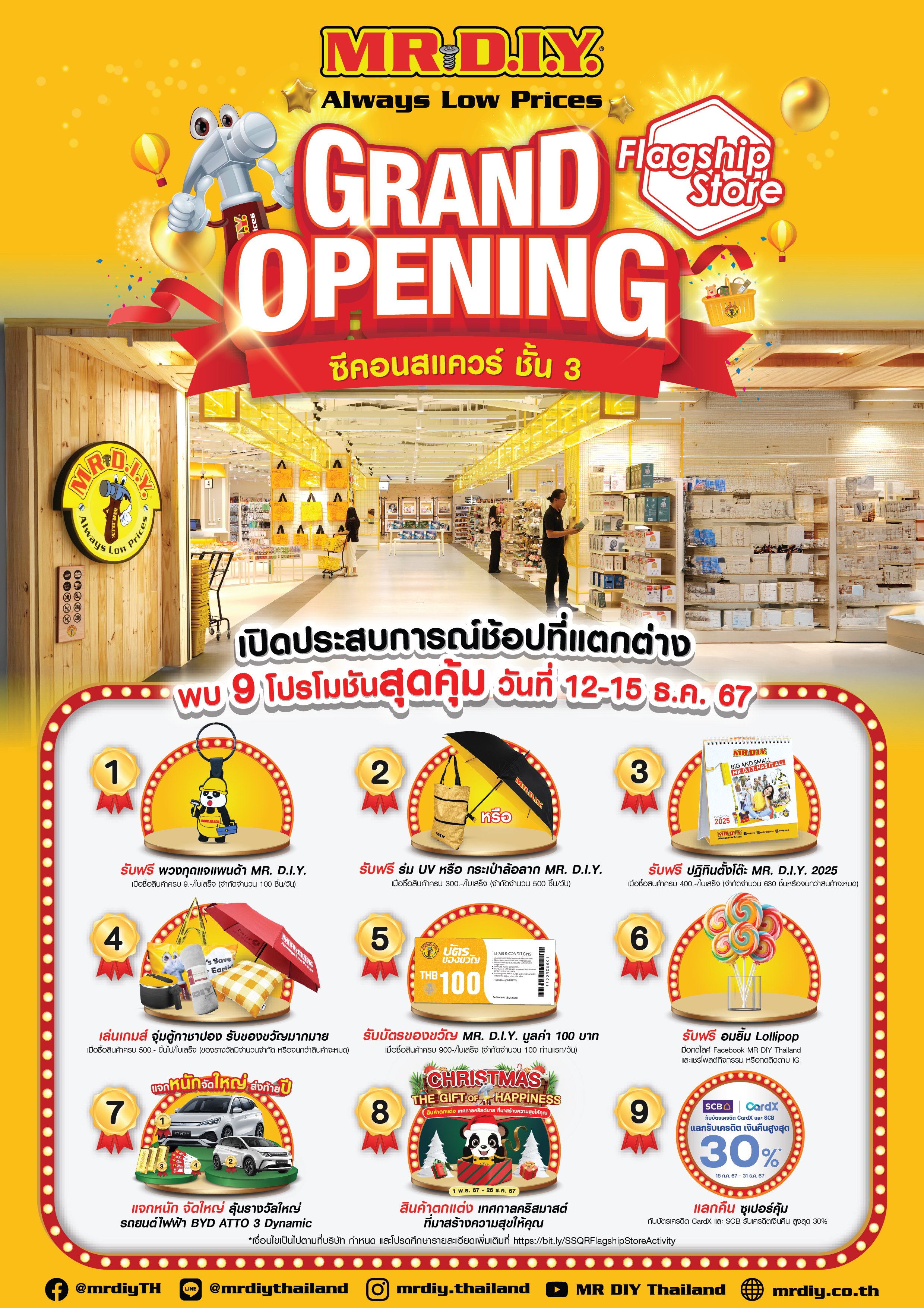 กรุงเทพฯ, 12 ธันวาคม 2567 – สัมผัสประสบการณ์การช็อปปิ้งที่แตกต่าง เมื่อ มิสเตอร์. ดี.ไอ.วาย. ผู้นำธุรกิจค้าปลีกอุปกรณ์ตกแต่งบ้านและสินค้าไลฟ์สไตล์ เปิดตัวแฟลกชิปสโตร์แห่งใหม่ ณ ศูนย์การค้าซีคอนสแควร์ ศรีนครินทร์ ภายใต้ธีม 'Feel the Difference' สะท้อนถึงการเติบโตของธุรกิจและความมุ่งมั่นในการมอบประสบการณ์การช็อปที่แตกต่างและพิเศษยิ่งขึ้น