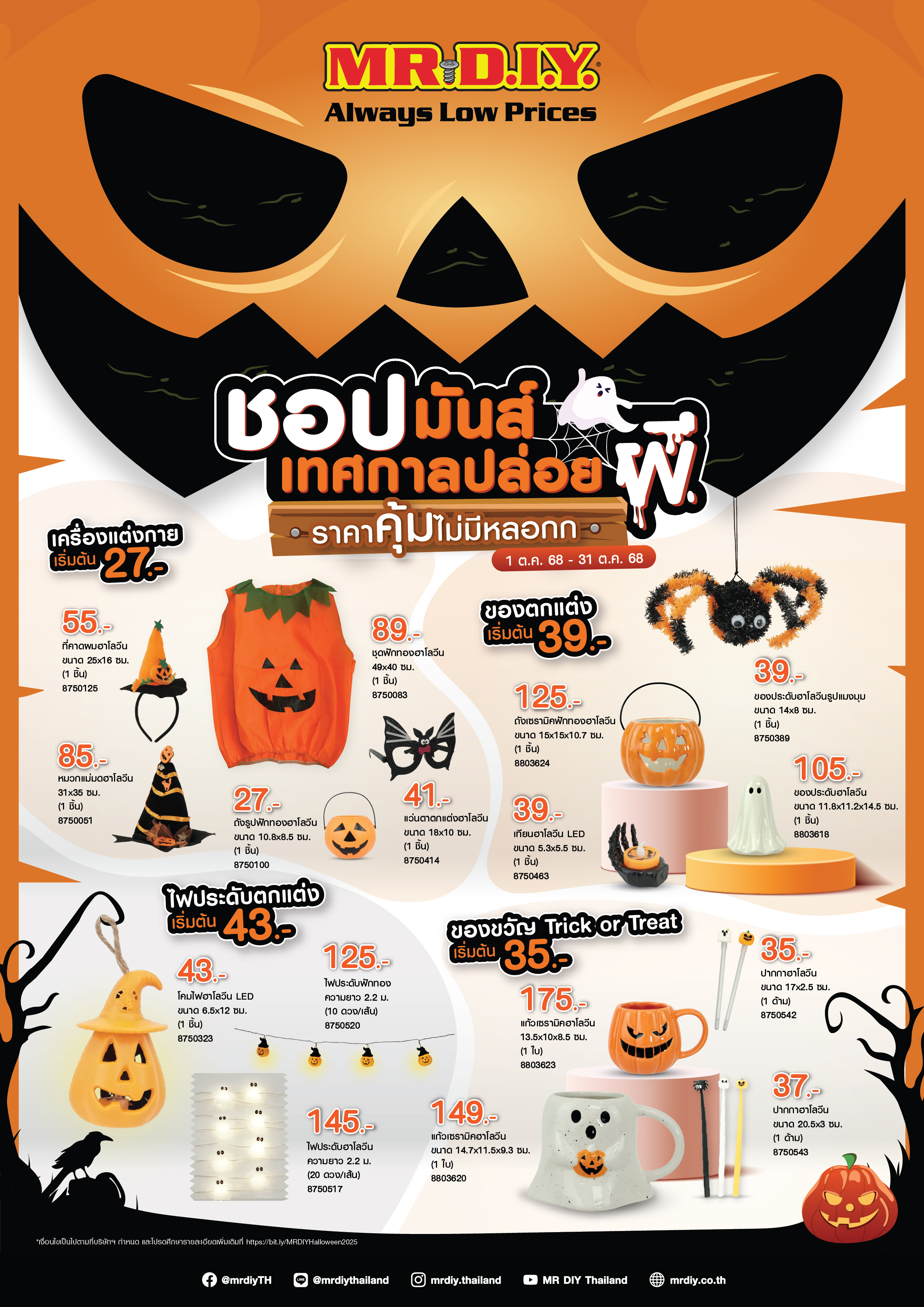 คุณอานุภาพ คงมาลัย รองประธานบริหารฝ่ายการตลาด บริษัท มิสเตอร์. ดี.ไอ.วาย. โฮลดิ้ง (ประเทศไทย) จำกัด (มหาชน) กล่าวว่า “ฮาโลวีนเป็นอีกหนึ่งเทศกาลที่เต็มไปด้วยความคึกคักและสีสันที่ได้รับความนิยมทั่วโลก เสน่ห์ของเทศกาลนี้อยู่ที่การแต่งกายในธีมแฟนซีและการตกแต่งสถานที่ ที่ช่วยสร้างบรรยากาศแห่งความสนุกสนานและความสุขให้กับทุกคนในครอบครัว เราจะเห็นการจัดกิจกรรมในหลายพื้นที่ ไม่ว่าจะเป็นโรงเรียน สถานที่ทำงาน หรือแม้แต่งานอีเวนท์ต่างๆ ซึ่งดึงดูดทั้งเด็กและผู้ใหญ่ให้เข้าร่วมอย่างสนุกสนาน.jpg?_t=1759228106)