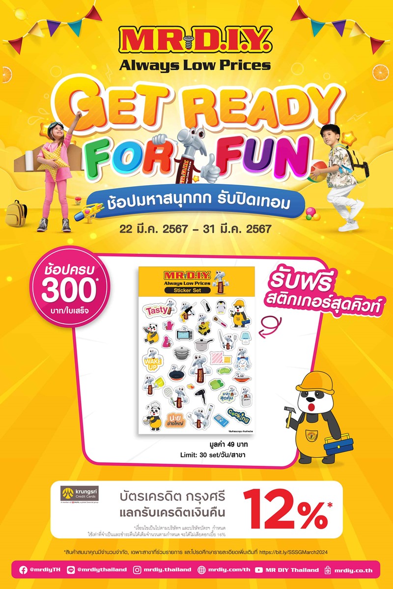 สายช้อปห้ามพลาด MR.DIY จัดกิจกรรมพิเศษ ช้อปครบ 300 บาท วันนี้มีแต่คุ้ม รับฟรี สติกเกอร์สุดคิ้วท์ จากมิสเตอร์. ดี.ไอ.วาย