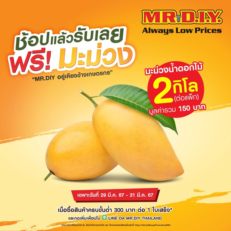 MR.DIY ช่วยเกษตรกร ช้อปแล้ว รับเลย ฟรี! มะม่วง วันที่ 29-31 มีนาคม 2567 เฉพาะสาขาที่ร่วมรายการ