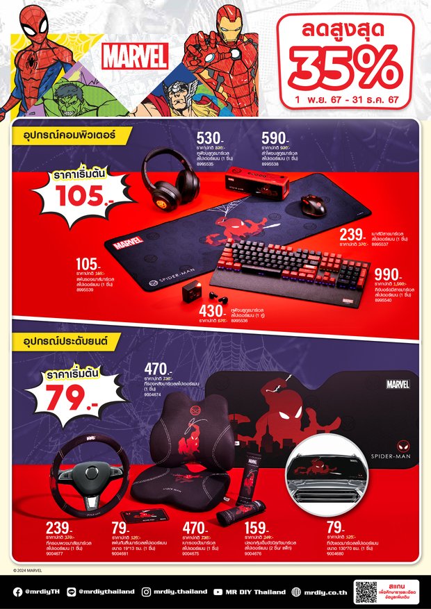 - สินค้าที่ร่วมรายการสามารถตรวจสอบได้จาก Website: https://bit.ly/MRDIY_Marvel