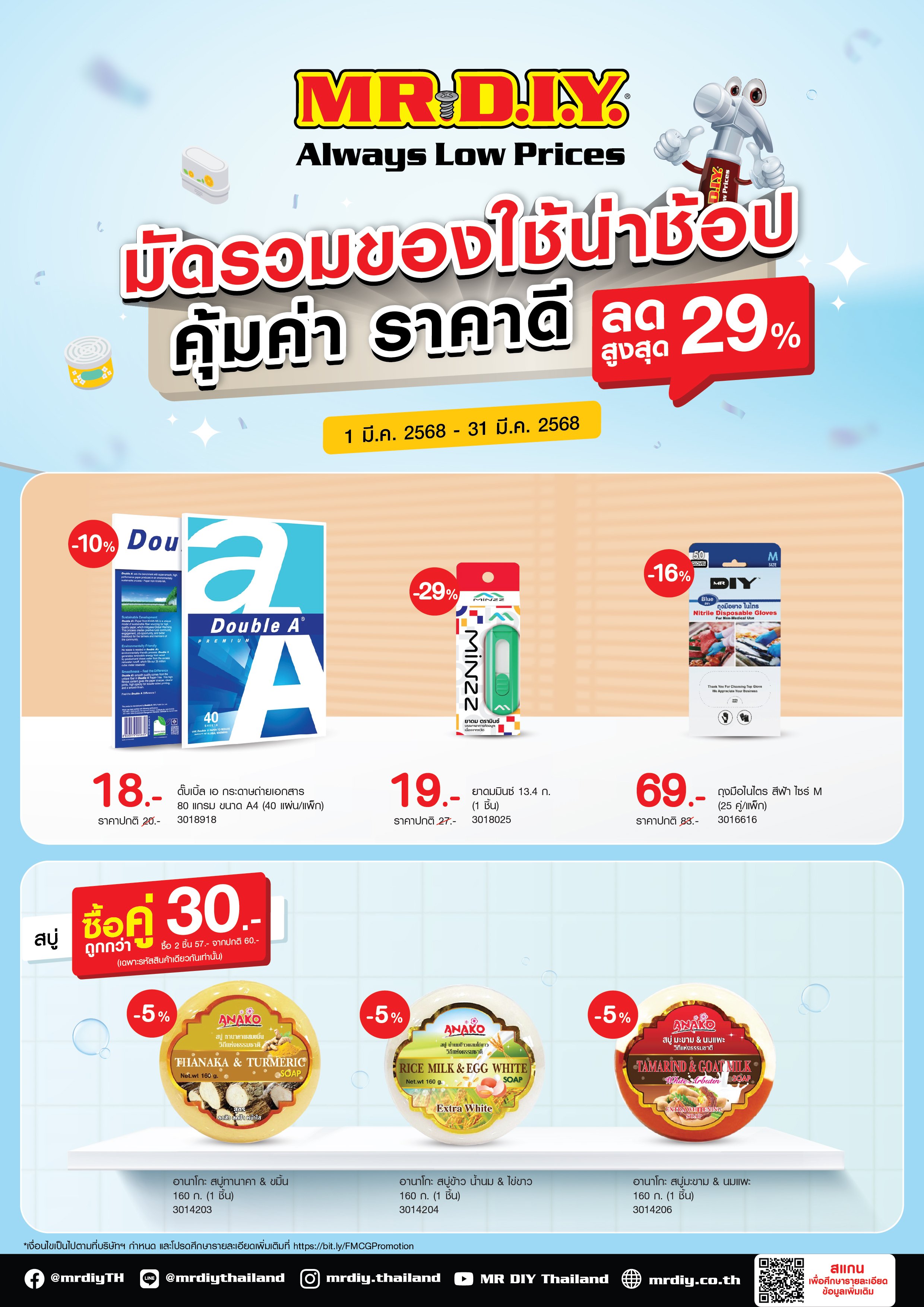 มิสเตอร์. ดี.ไอ.วาย. จัดโปรโมชัน “มัดรวมของใช้น่าช้อป คุ้มค่า ราคาดี ลดสูงสุด 29%”