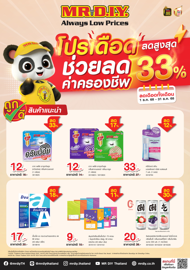 มิสเตอร์. ดี.ไอ.วาย. จัดกิจกรรม “โปรเดือด ช่วยลดค่าครองชีพ ลดราคาสูงสุด 33%*”