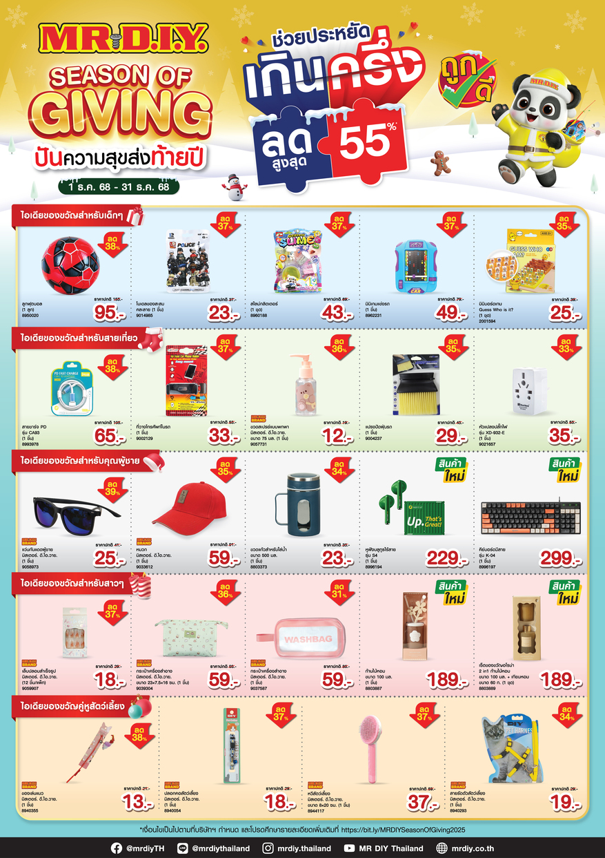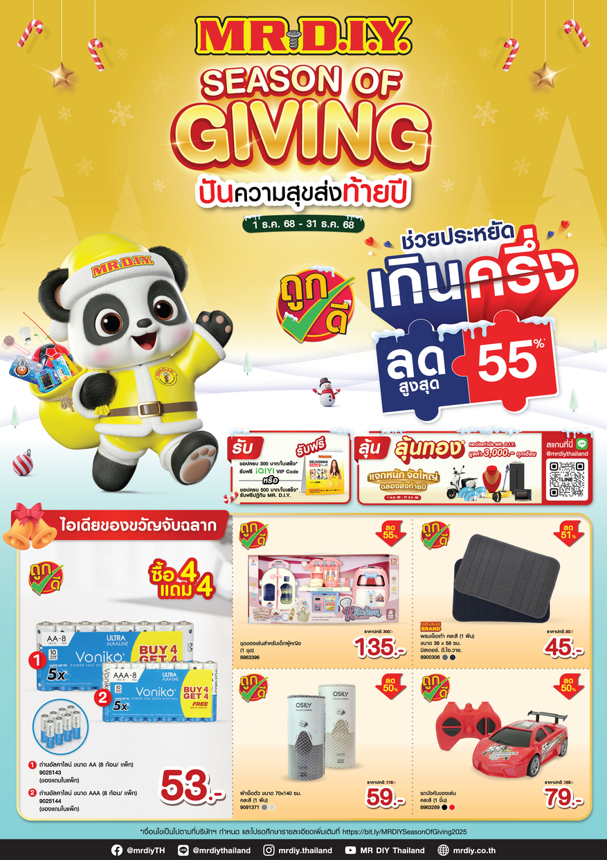- สามารถตรวจสอบสินค้าที่ร่วมรายการได้จาก https://bit.ly/MRDIYSeasonOfGiving2025