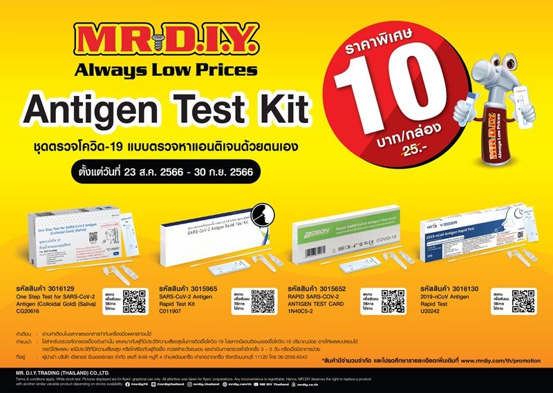 MR.DIY จำหน่ายชุดตรวจโควิด ATK ในราคาถูกลงกว่าเดิม พิเศษ กล่อง 10 บาท เท่านั้น