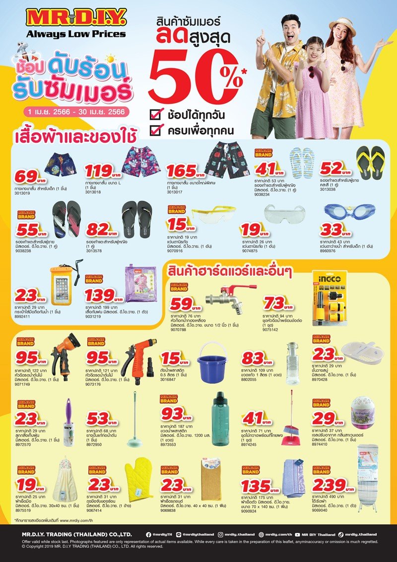 มิสเตอร์. ดี.ไอ.วาย. ผู้นำด้านค้าปลีกสินค้าตกแต่งและซ่อมแซมบ้านที่มีสาขามากที่สุดในประเทศไทย ส่งโปรโมชัน ‘ช้อปดับร้อน รับซัมเมอร์’ ยกทัพสินค้าซัมเมอร์ลดสูงสุดถึง 50%* และสินค้าอื่นๆ หลากหลายแบบอีกกว่า 15,000 รายการ ใน 10 แผนก มาให้นักช้อปได้เลือกช้อปชนทุกองศาร้อน ตั้งแต่ 1-30 เมษายน 2566 ในราคาถูกคุ้มเสมอ (Always Low Prices) ตอกย้ำการเป็นร้านค้าที่สามารถ “ช้อปได้ทุกวัน ครบเพื่อทุกคน”