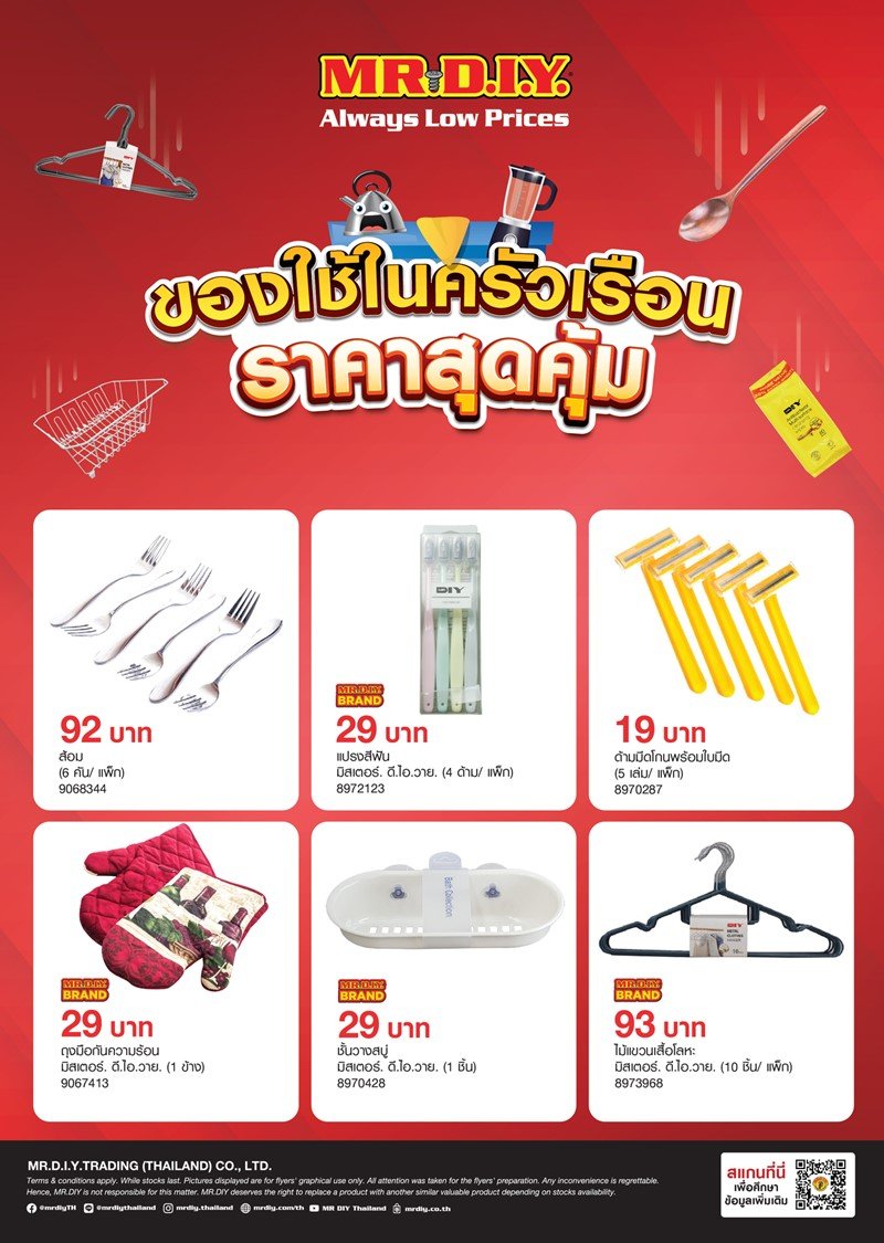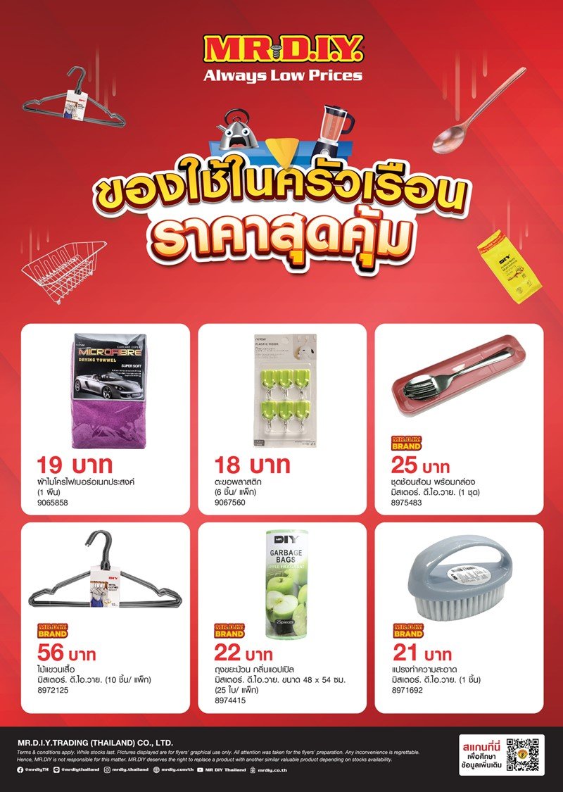 ช้อป สุดคุ้ม ของใช้ในครัวเรื่อนที่ MR.DIY ตอบโจทย์ทุกคนที่ตามหา มีให้เลือกมากมาย มาพร้อมกับราคาสุดคุ้ม สามารถเลือกซื้อได้ตามความต้องการที่ MR.DIY ทุกสาขาใกล้บ้านคุณ