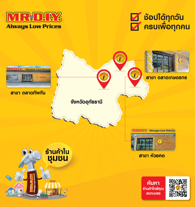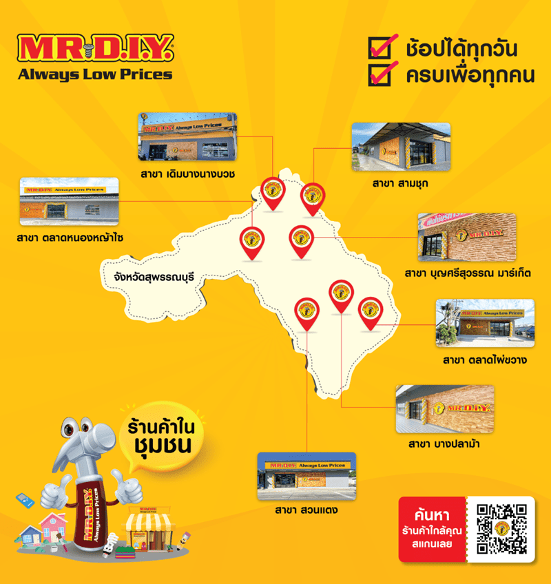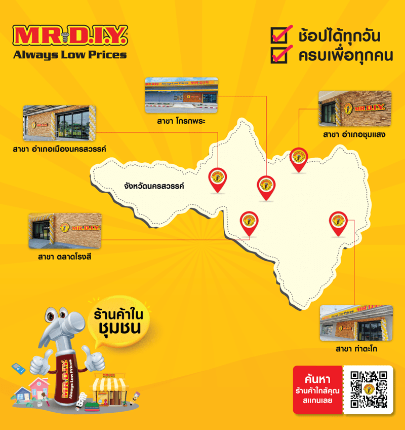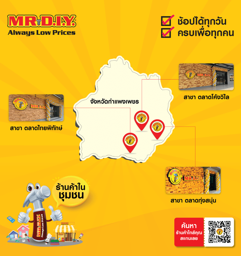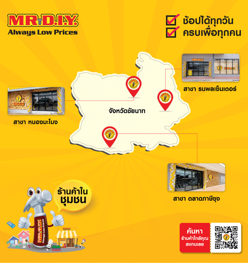 ค้นหาสาขาใกล้บ้าน คลิก https://www.mrdiy.com/th/storelocator